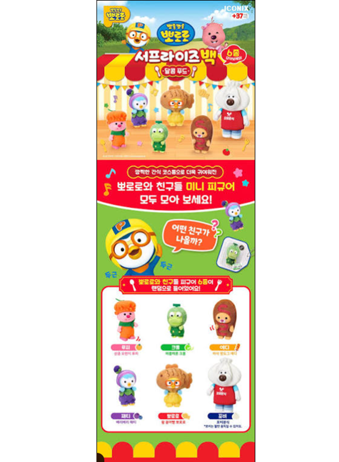 - 구성 캐릭터 : 뽀로로 / 크롱 / 패티 / 루피 / 에디 / 포비 (총 6종)